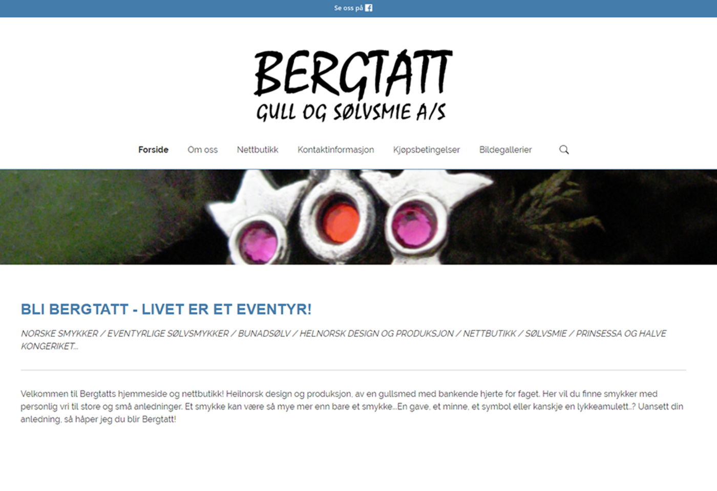 Bergtatt Gull og Sølvsmie AS Klikk her for å komme direkte til nettsiden og gå hit for å se hvordan den vises på en mobiltelefon. Bergtatt Gull og Sølvsmie AS bruker en standard Mekke-mal som er tilpasset kundens logo og design. De bruker aktivt vår nettbutikk. standardmal nettbutikk Del denne siden med andre! Ditt navn: Din epost: Mottakers navn: Mottakers epost: Klarte ikke å laste inn Facebook-feeden.Klikk her for å gå til Facebook-siden vår!