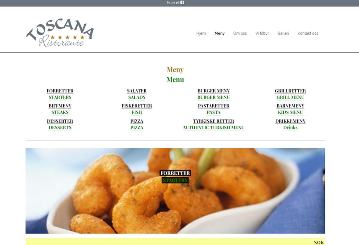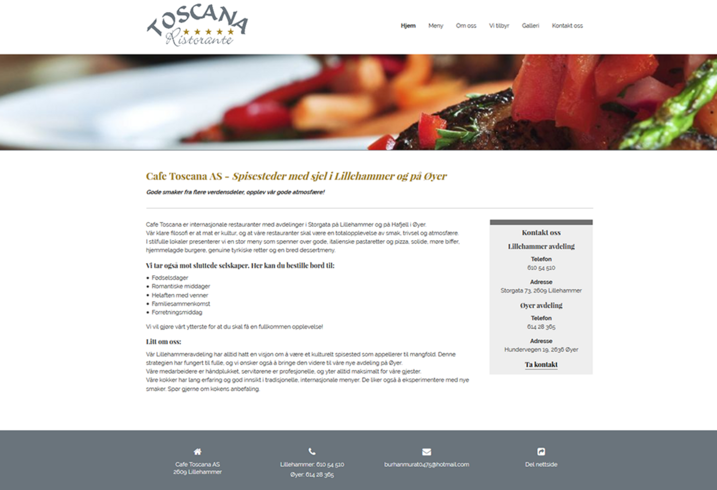 Cafe Toscana AS bruker en standard Mekke-mal som er tilpasset kundens logo og design.