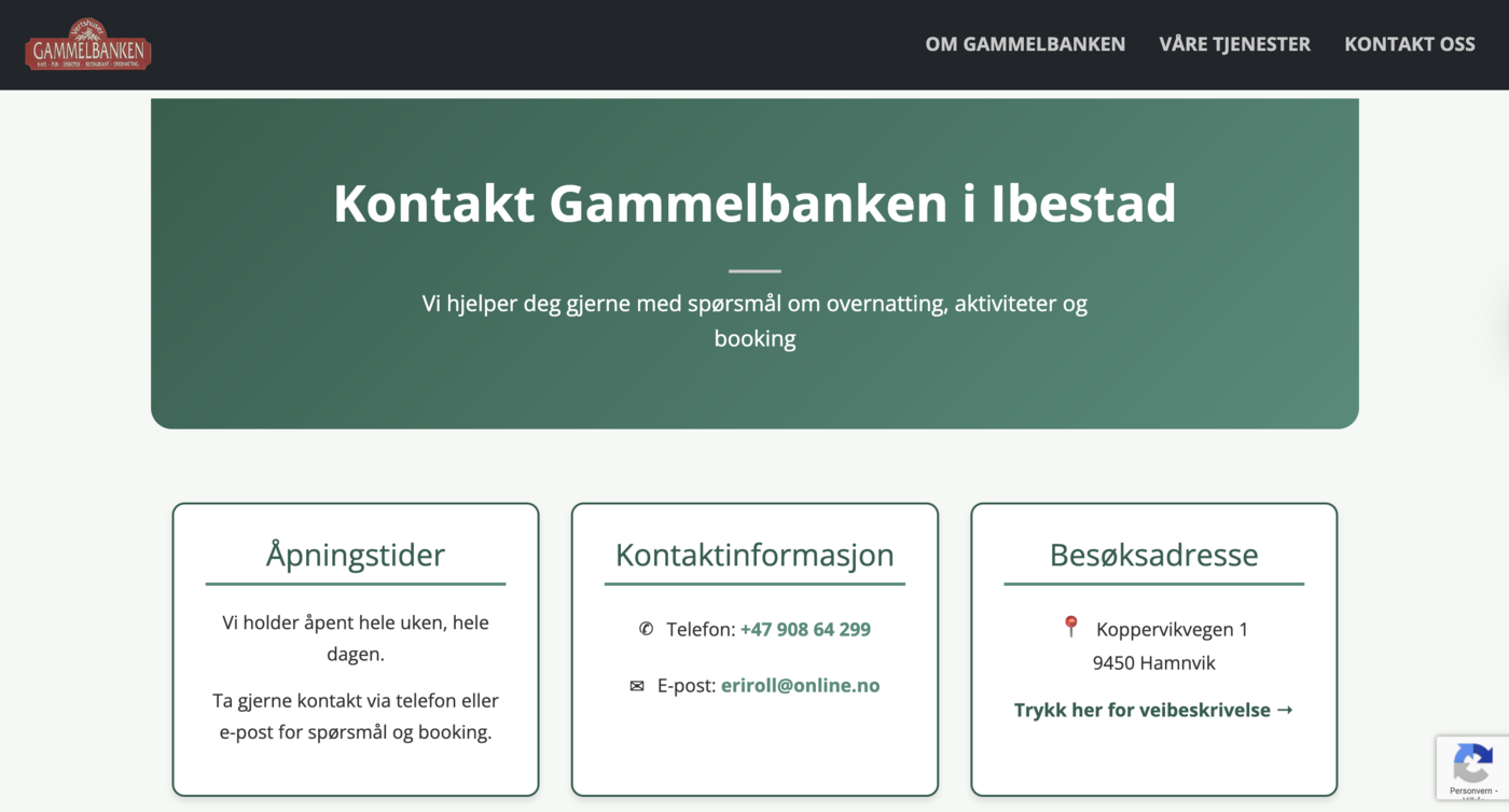 Gammelbankenibestad.no viser hvordan AI kan brukes til å bygge funksjonelle bookingsystemer for overnattingsbedrifter. Her har kunstig intelligens hjulpet med å lage et avansert bookingskjema hvor gjester kan velge romtype, antall personer og datoer – alt for å gjøre bestillingsprosessen enkel.