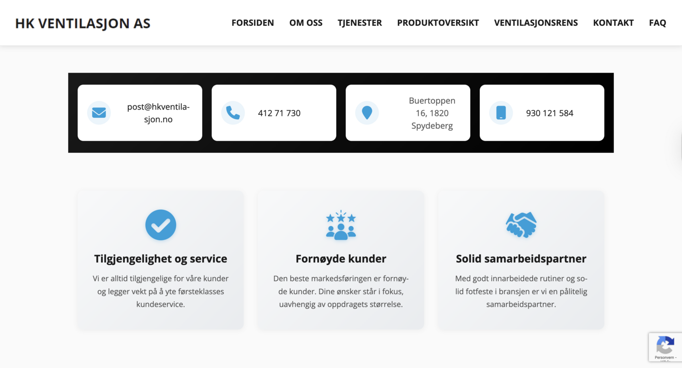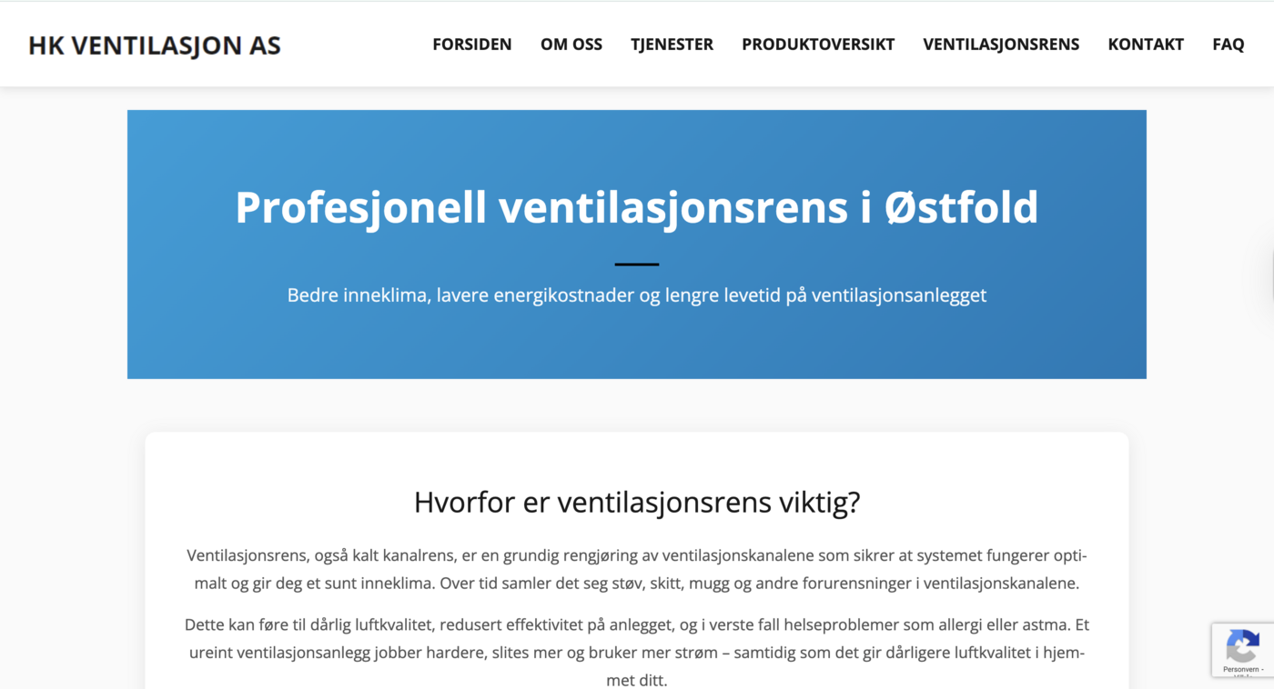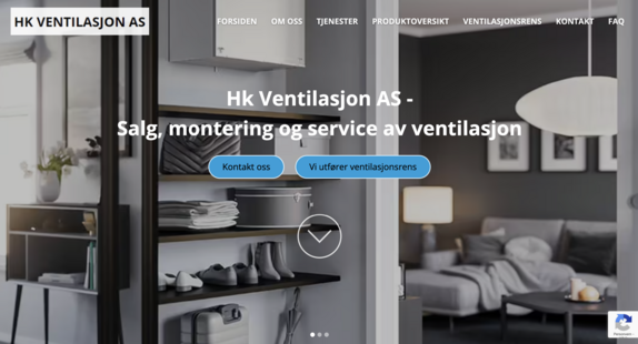 Hkventilasjon.no viser hvordan vi bruker AI til å bygge nettsider som gjør mer enn bare å se bra ut. Her har kunstig intelligens hjulpet med å lage en omfattende FAQ-seksjon som svarer på alt folk lurer på om ventilasjon, og en produktoversikt med integrert nettbutikk.