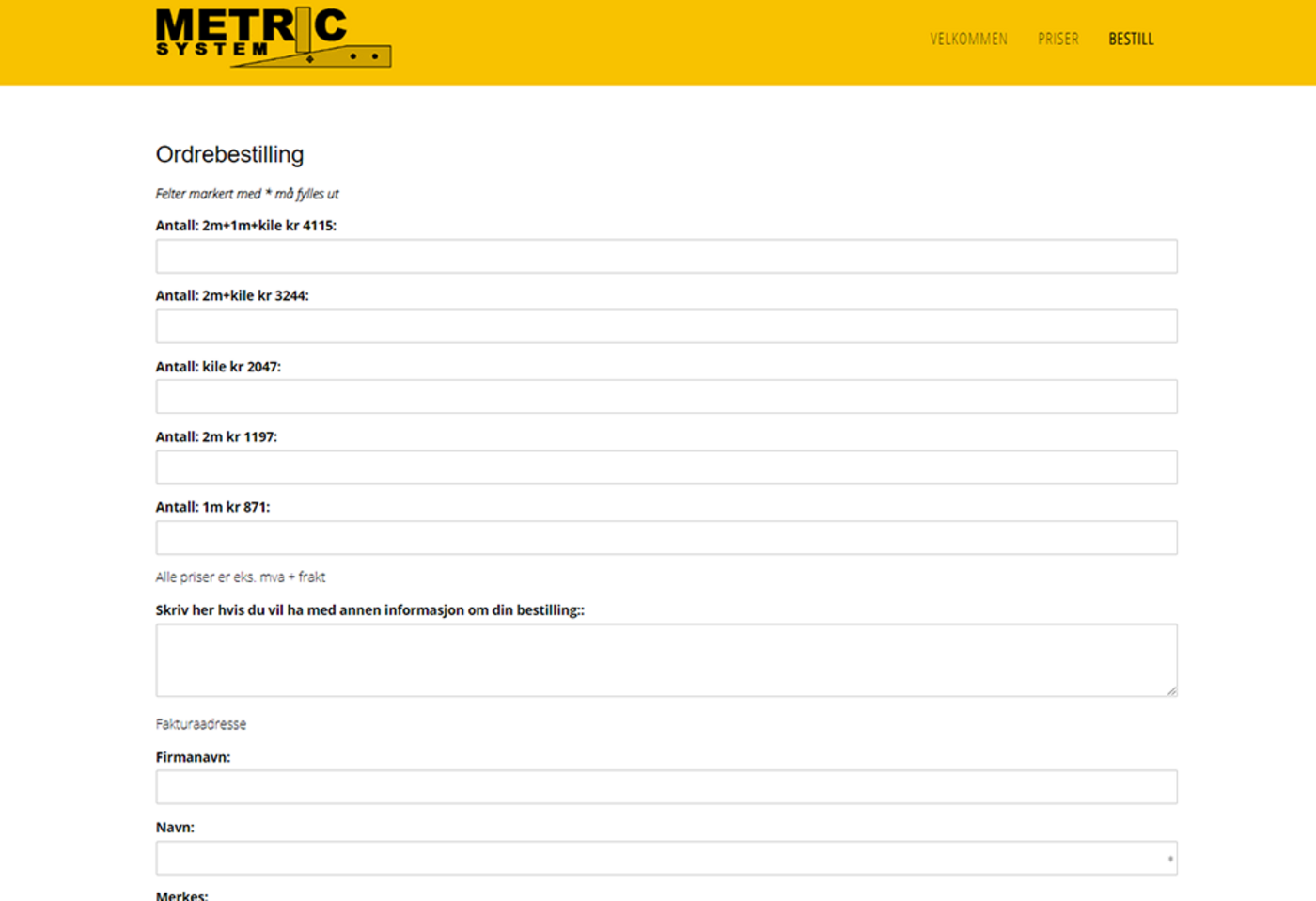 Metric System bruker en standard Mekke-mal som er tilpasset kundens logo og design.