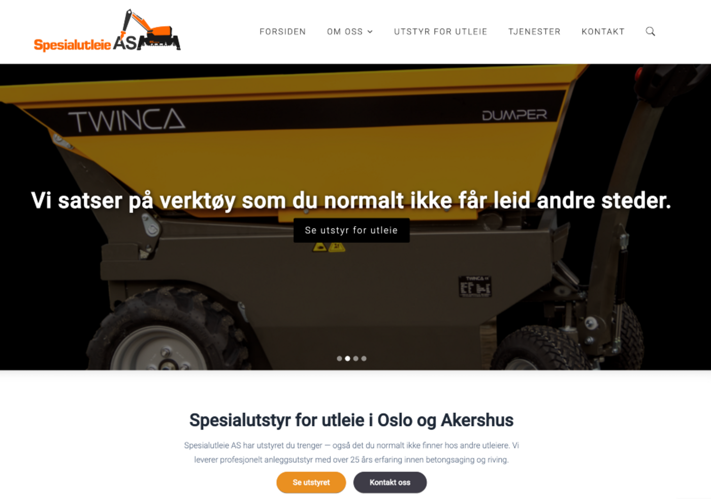 Spesialutleie.no er et eksempel på våre moderne nettsideløsninger med avansert design og funksjonalitet. Nettsiden er utviklet med assistanse fra AI-teknologi for å optimalisere både brukeropplevelse og konvertering.