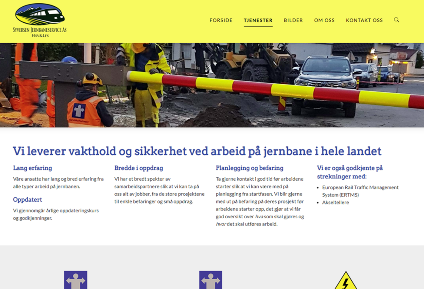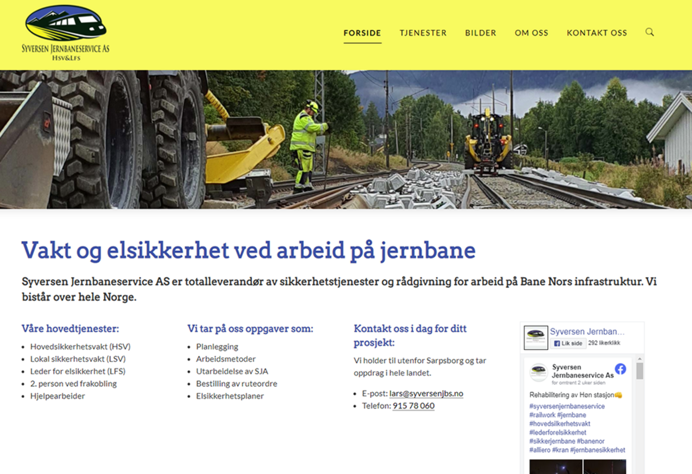 Syversen Jernbaneservice AS Klikk her for å komme direkte til nettsiden og gå hit for å se hvordan den vises på en Syversen Jernbaneservice AS bruker en standard Mekke-mal som er tilpasset kundens logo og design. Del denne siden med andre! Ditt navn: Din epost: Mottakers navn: Mottakers epost: Klarte ikke å laste inn Facebook-feeden.Klikk her for å gå til Facebook-siden vår!