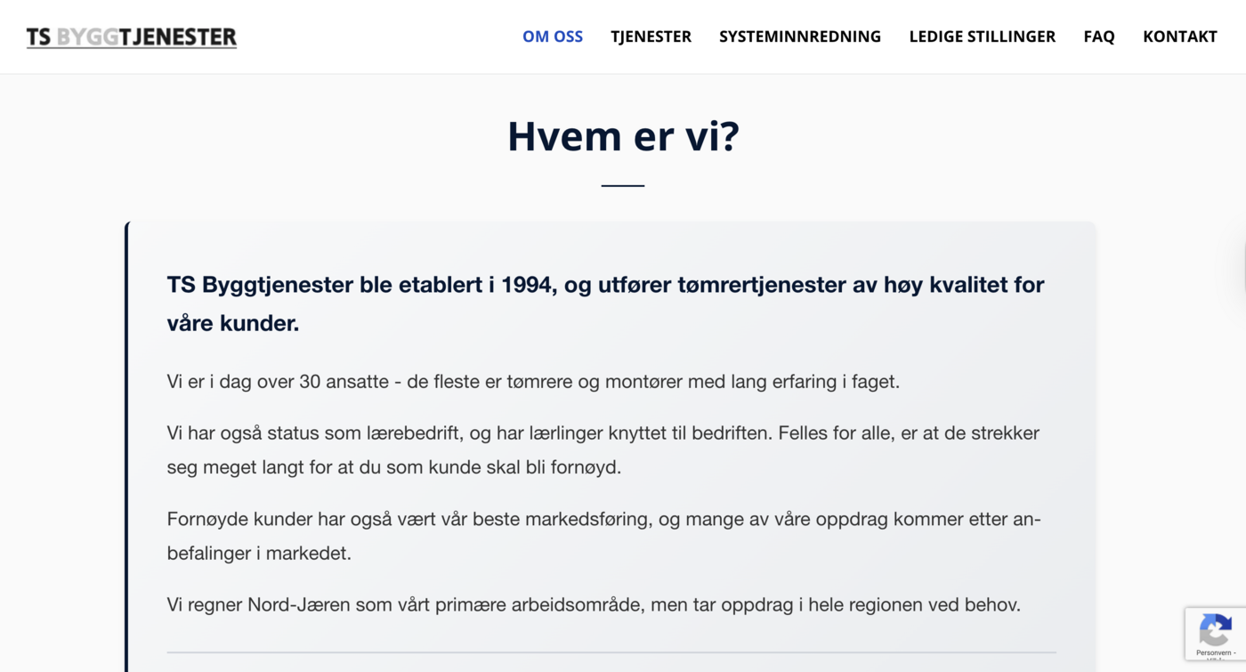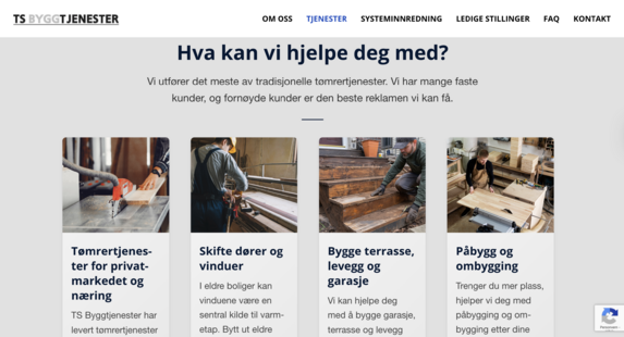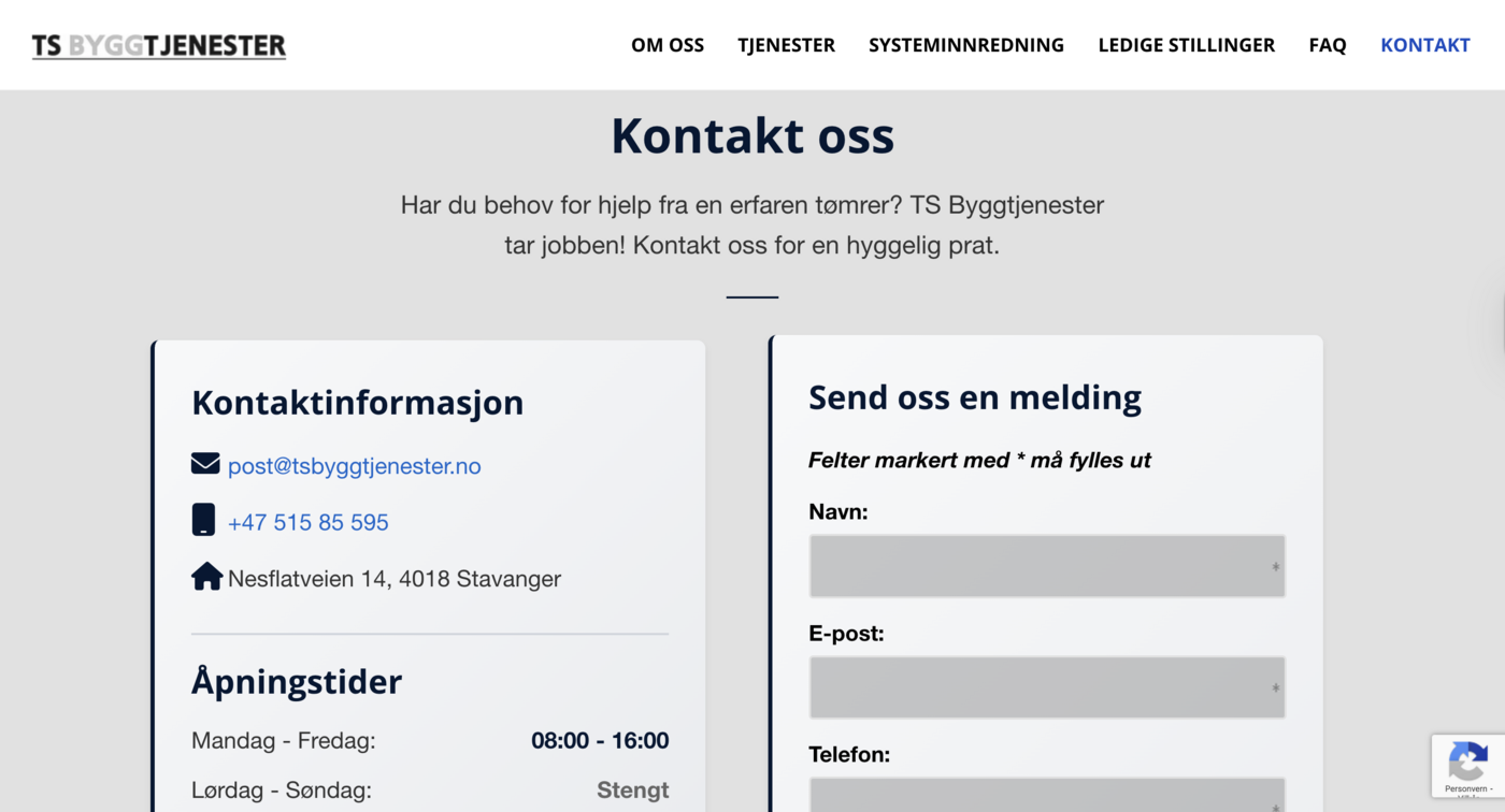 AI har også strukturert opp tjenestene med ikoner og bilder, bygget kontaktskjemaer for forespørsler, og organisert innholdet slik at både privatpersoner og bedriftskunder lett finner det de trenger.
